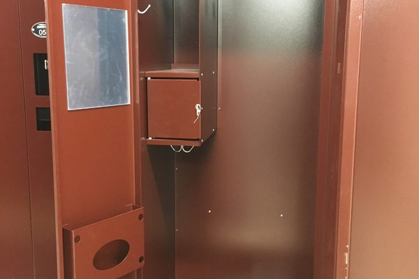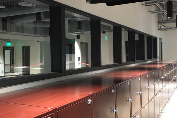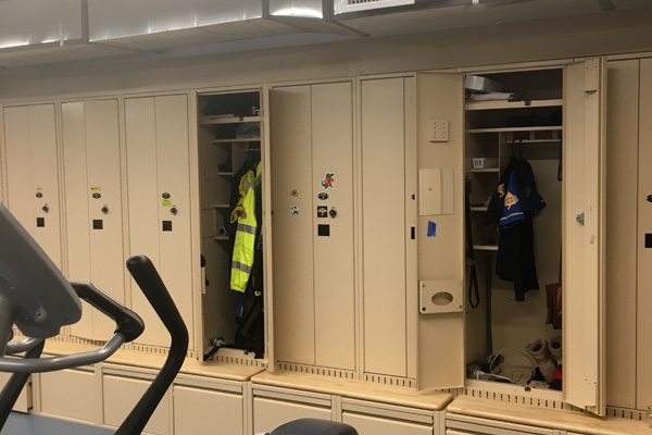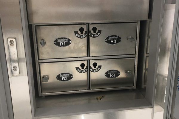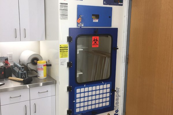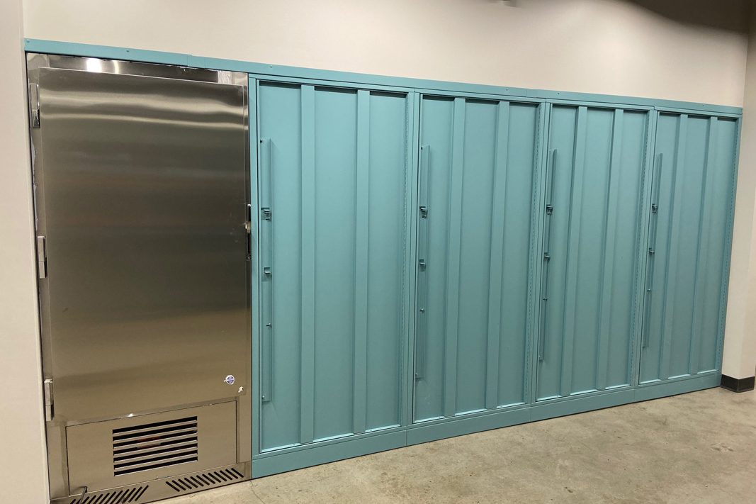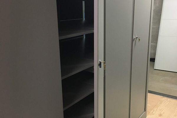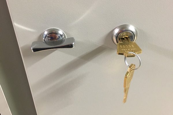 The solution was to use Times-2 Speed Files – dual-sided, rotating filing cabinets that lock. Units can be closed to provide a clean and uncluttered door front. When a file is needed, one spin rotates the cabinet to the open position; One more spin closes the unit again.